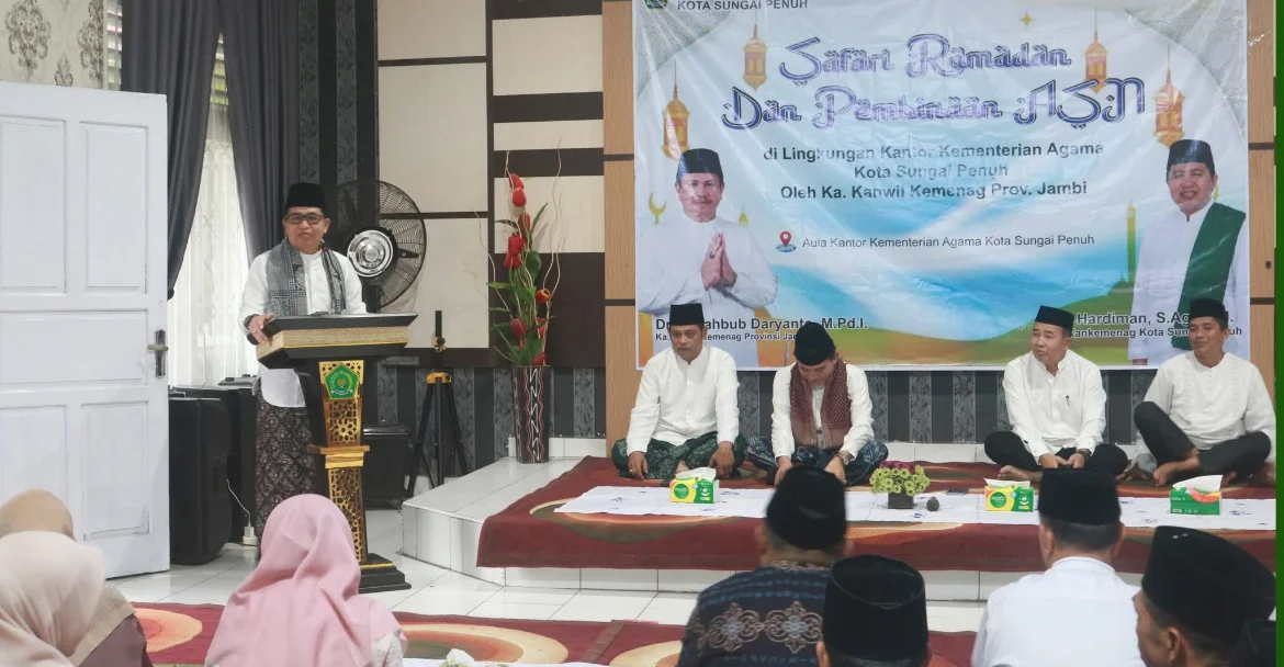 RRI.CO.ID, Sungai Penuh - Kantor Wilayah Kementerian Agama Provinsi Jambi memberikan pembinaan kepada Aparatur Sipil Negara (ASN) di lingkungan Kantor Kementerian Agama Kota Sungai Penuh, Jumat 6 Maret 2026,Kegiatan yang berlangsung di Aula Kantor Kemenag Kota Sungai Penuh tersebut dirangkaikan dengan buka puasa bersama sebagai bagian dari rangkaian Safari Ramadan 1447 Hijriah.