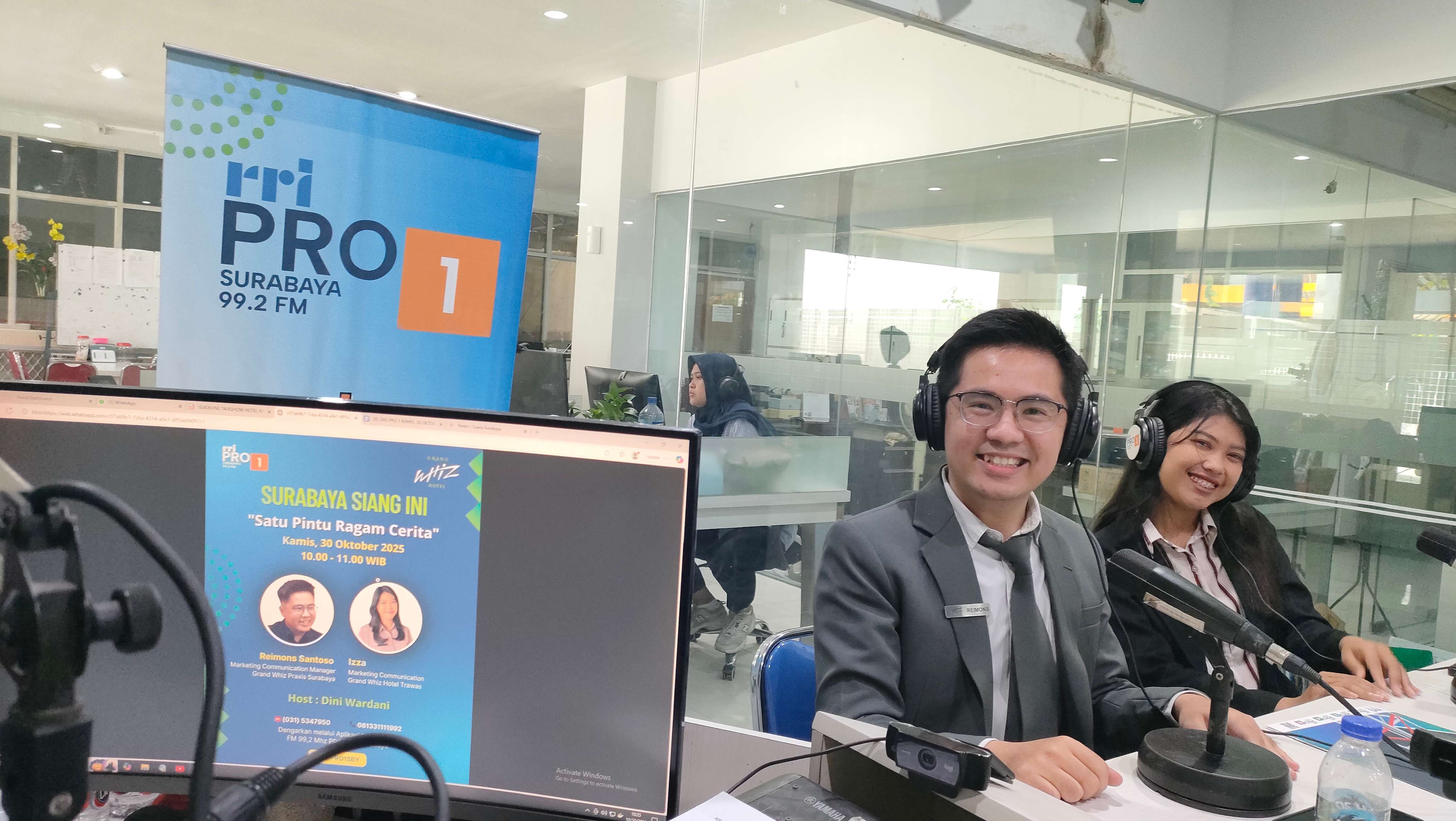 KBRN, Surabaya: Dunia perhotelan kian dinamis, terutama dalam menghadapi tren wisata masa kini yang terus berubah. Dalam program “Surabaya Siang Ini”, Kamis (30/10/2025) Izza, Marketing Communication Grand Whiz Hotel Trawas memperkenalkan berbagai paket acara spesial, termasuk Birthday Celebration Package dan Wedding in Nature yang menjadi favorit pengunjung.