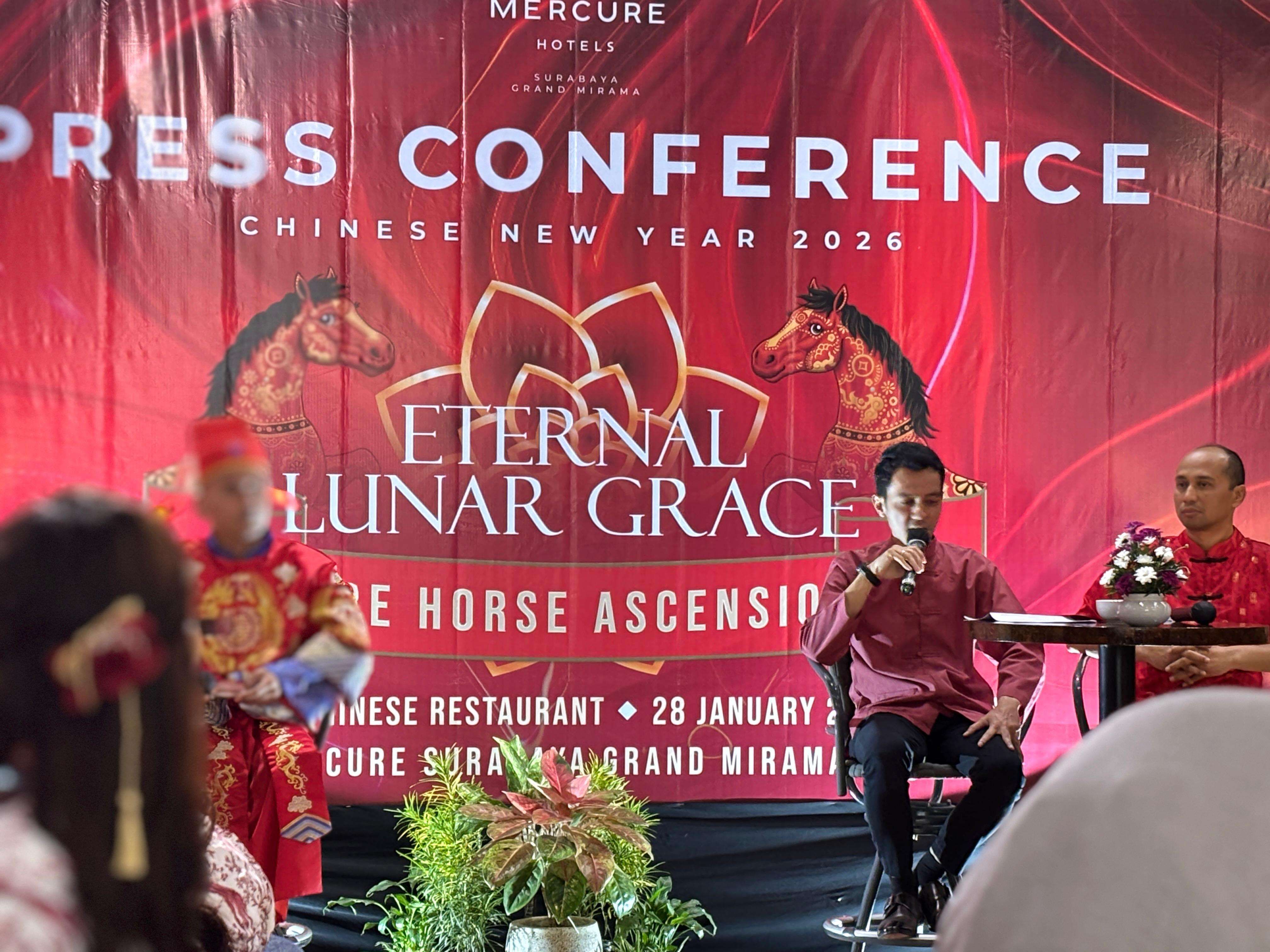 Mercure Surabaya Grand Mirama Hotels tahun ini kembali menghadirkan suasana megah dan penuh kehangatan untuk merayakan pergantian tahun ular kayu ke tahun kuda api. Yang akan diselenggarakan pada 16 Februari 2026 di Grand Ballroom Lantai 2. Seperti tahun-tahun sebelumnya yang selalu menawarkan pengalaman tak terlupakan untuk berkumpul bersama keluarga, kerabat, dan orang-orang terkasih.