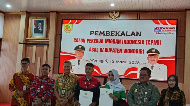 RRI.CO.ID, Surakarta - Pemerintah Kabupaten Wonogiri melalui Dinas Tenaga Kerja dan Perindustrian menyelenggarakan kegiatan pembekalan bagi Calon Pekerja Migran Indonesia (CPMI) asal Kabupaten Wonogiri pada Kamis, 12 Maret 2026. Kegiatan dilaksanakan di Ruang Khayangan Sekretariat Daerah Kabupaten Wonogiri.