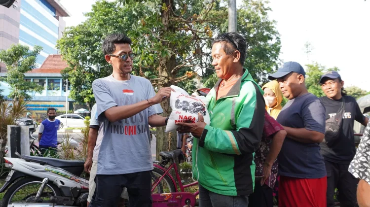 RRI.CO.IS, Surakarta – Dua sahabat ojek online (ojol) yang sedang mangkal di jalan Slamet Riyadi kawasan Gladag Solo merasa kaget dan kemudian tersenyum sumringah saat tiba-tiba mendapatkan rejeki 5 kg beras. Deni (35) dan Heri (56), tidak menyangka mendapatkan berkah Ramadan saat keduanya istirahat usai mengantar penumpang.