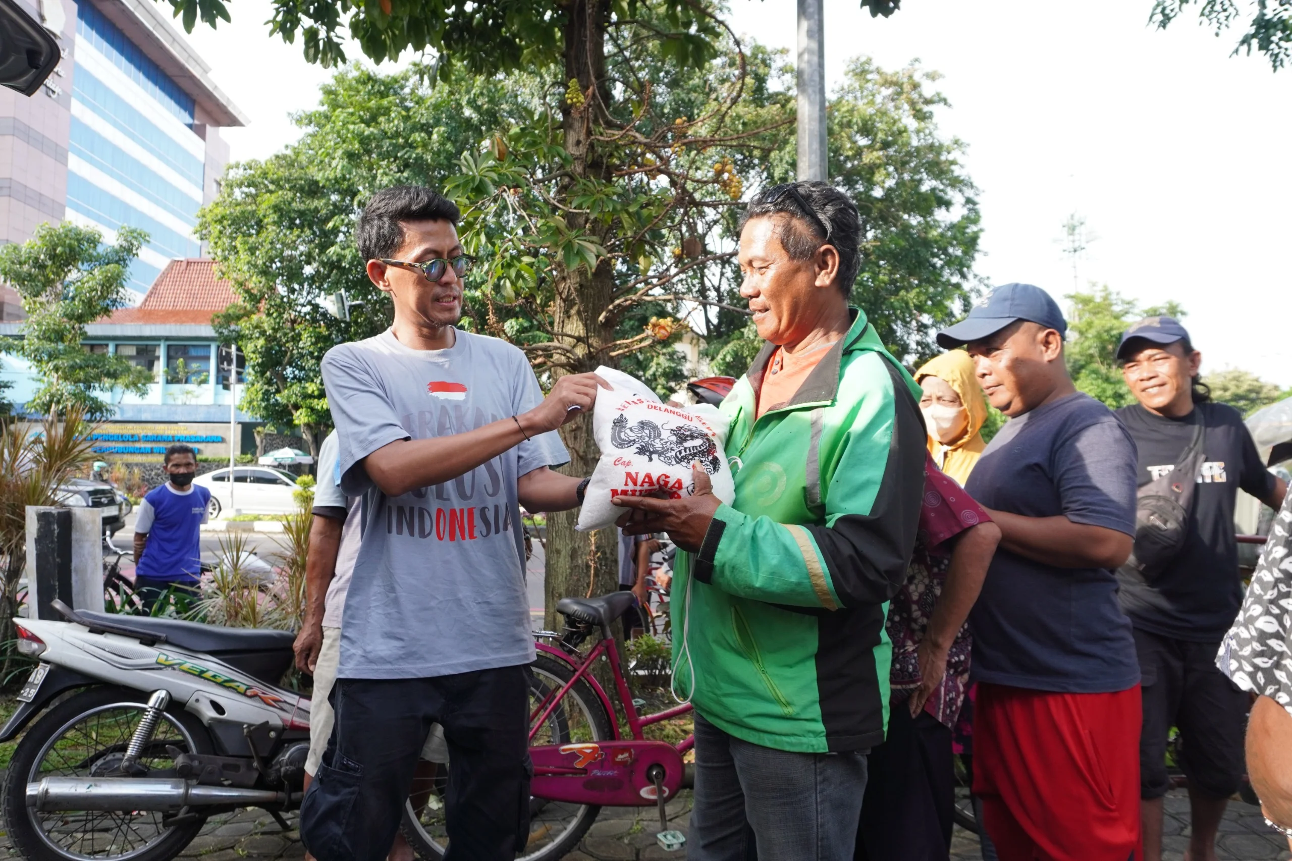 RRI.CO.IS, Surakarta – Dua sahabat ojek online (ojol) yang sedang mangkal di jalan Slamet Riyadi kawasan Gladag Solo merasa kaget dan kemudian tersenyum sumringah saat tiba-tiba mendapatkan rejeki 5 kg beras. Deni (35) dan Heri (56), tidak menyangka mendapatkan berkah Ramadan saat keduanya istirahat usai mengantar penumpang.