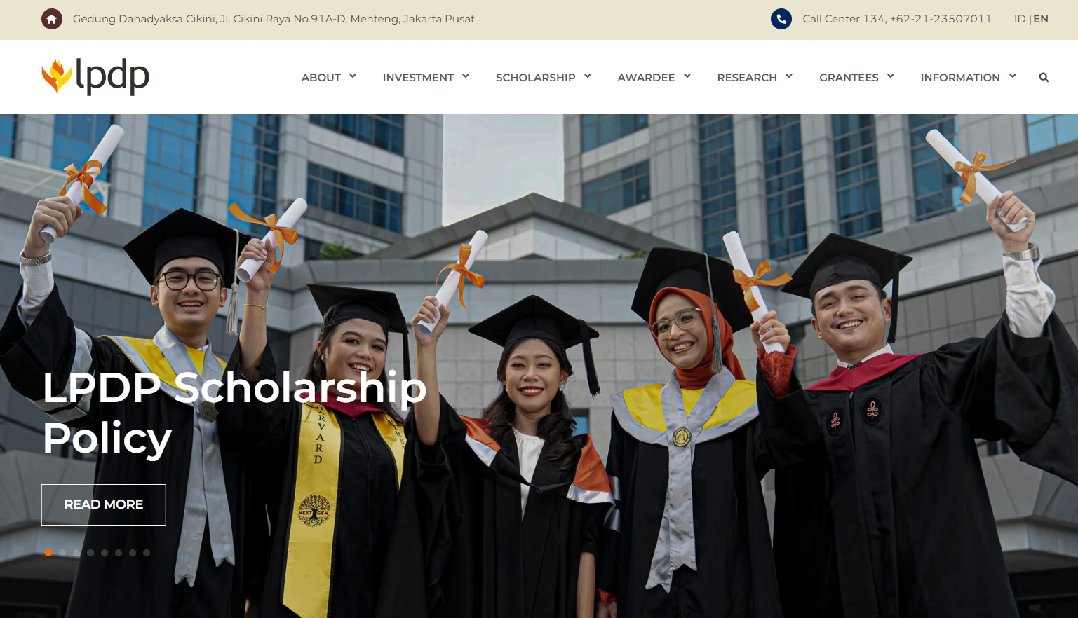 LPDP merupakan program beasiswa pemerintah di bawah naungan Kementerian Keuangan Republik Indonesia yang bertujuan mencetak sumber daya manusia unggul melalui pendanaan pendidikan jenjang magister (S2) dan doktor (S3), baik di dalam maupun luar negeri. Pembiayaan mencakup biaya kuliah, biaya hidup, hingga kebutuhan penunjang akademik lainnya. Dana tersebut bersumber dari Dana Abadi Pendidikan yang dikelola negara.