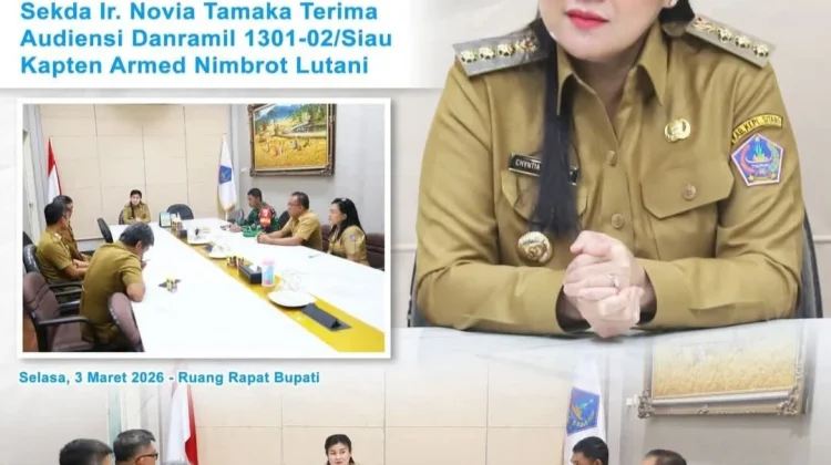 RRI.CO.ID, Tahuna -Bupati Kepulauan Siau, Tagulandang, dan Biaro, Chyntia Ingrid Kalangit, SKM, menerima audiensi Danramil 1301-02/Siau, Kapten Armed Nimbrot Lutani, Selasa, 3 Maret 2026.