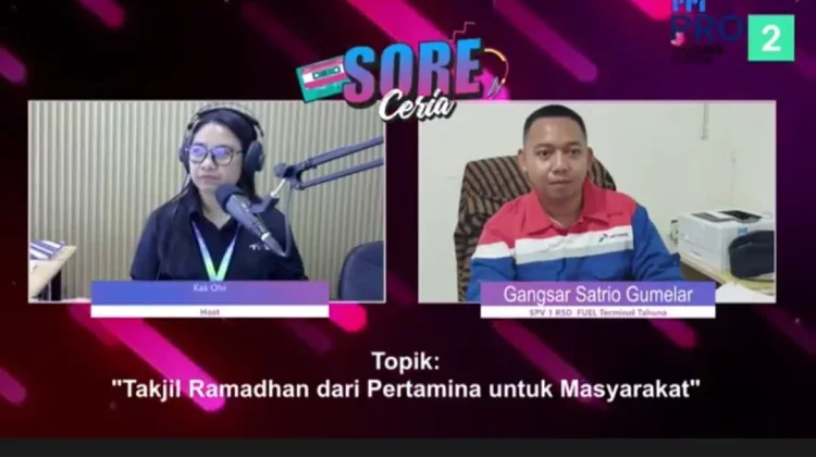 Gangsar Satrio Gumelar SPV 1 RSD FUEL Terminal Tahuna berbagi cerita di Pro 2 RRI tahuna dalam program Sore Ceria “Berkah Ramadhan” Kamis 12 Maret 2026