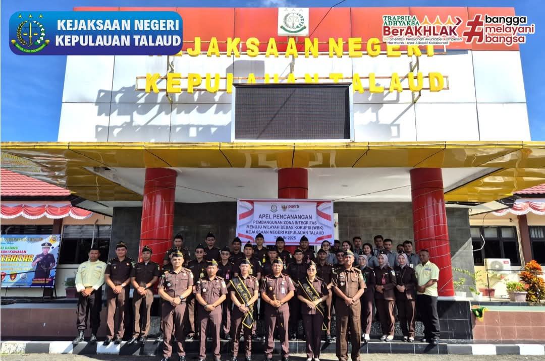 KBRN, Talaud : Bertempat di halaman Kantor Kejaksaan Negeri Kabupaten Kepulauan Talaud, Senin (10/2/2025) pagi telah dilaksanakan Upacara Pencanangan Pembangunan Zona Integritas (ZI) Menuju Wilayah Bebas Korupsi (WBK) Wilayah Birokrasi Bersih Melayani (WBBM) Kejaksaan Negeri Kepulauan Talaud.