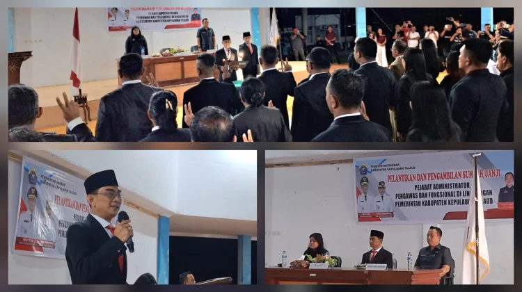 RRI. CO.ID, Talaud – Bupati Kepulauan Talaud, Welly Titah, resmi melantik dan mengambil sumpah janji 47 pejabat yang terdiri dari Pejabat Administrator, Pengawas, dan Fungsional di lingkungan Pemerintah Kabupaten (Pemkab) Kepulauan Talaud. Prosesi sakral ini berlangsung di Pendopo Rumah Dinas Bupati pada Jumat, 27 Februari 2026.