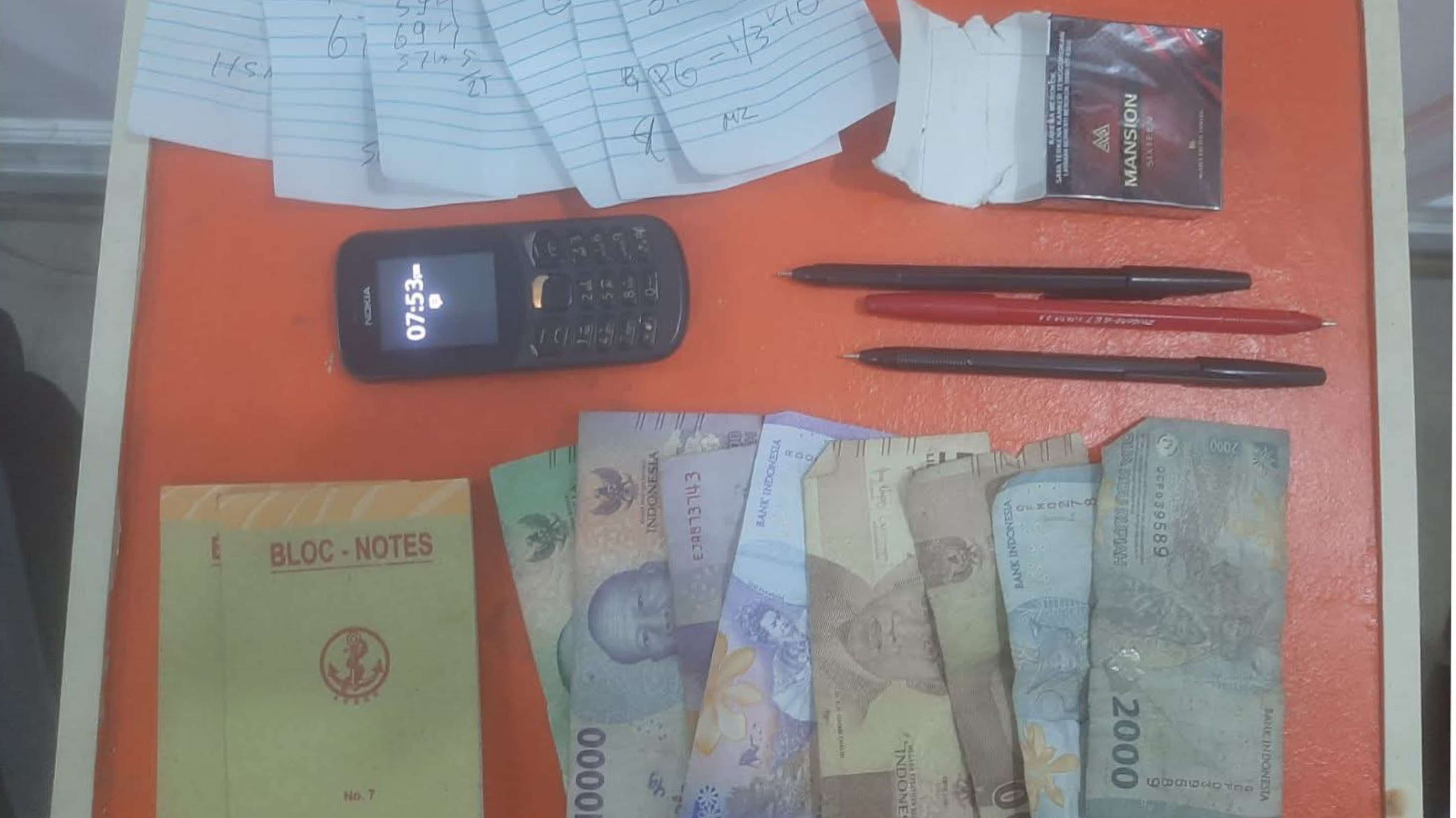 Petugas segera menindaklanjuti laporan itu dengan melakukan penyelidikan ke lokasi. R yang bertugas sebagai juru tulis ditangkap saat sedang mencatat nomor tebakan para pemain.