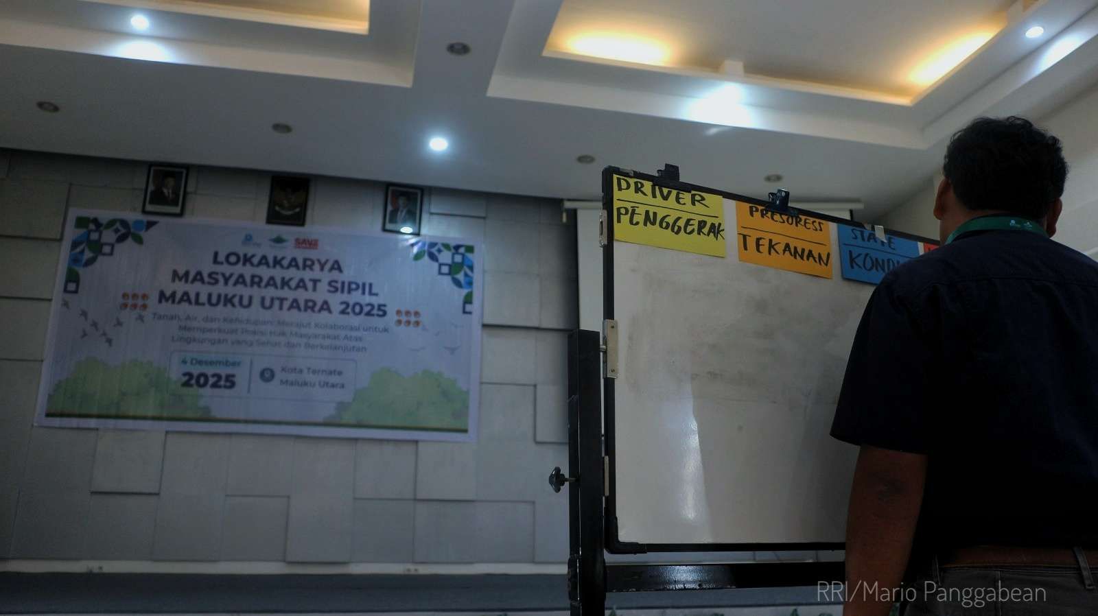 KBRN, Ternate: Ruang berbagi sebagai upaya dalam melindungi lingkungan hidup Maluku Utara terselenggara dalam Lokakarya Masyarakat Sipil Maluku Utara 2025. Lokakarya tersebut berlangsung di Hotel Emerald, Kota Ternate, Kamis (4/12/2025).