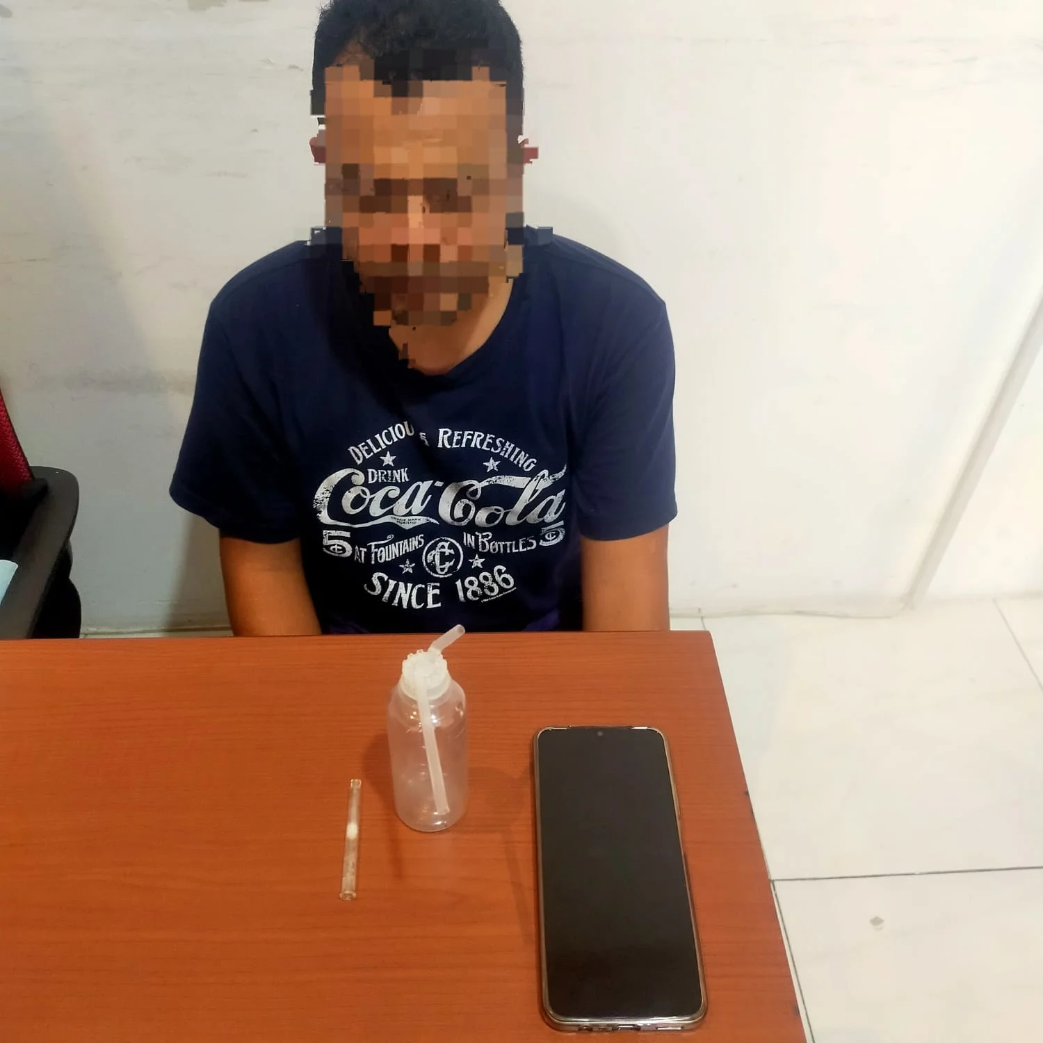 Dari hasil penggeledahan badan dan pakaian, petugas menemukan satu set alat hisap sabu (bong) yang masih berisi sisa sabu. Berdasarkan pengakuan tersangka, alat tersebut baru saja digunakan.