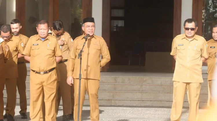 Hal tersebut disampaikan saat memimoin apel pagi yang berlangsung di halaman Kantor Bupati Halmahera Tengah, Maluku Utara, Senin 9 Maret 2026.