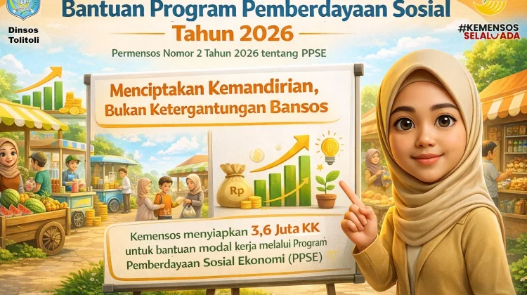 RRI.CO.ID, Tolitoli - Pemerintah melalui Kementerian Sosial Republik Indonesia akan melakukan perubahan besar dalam skema Bantuan Sosial (Bansos) mulai tahun 2026. Sebanyak 3,9 juta Keluarga Penerima Manfaat (KPM) secara nasional akan dialihkan dari pola bantuan tunai menuju program pemberdayaan ekonomi produktif. Kebijakan tersebut ditandai dengan terbitnya Peraturan Menteri Sosial Nomor 2 Tahun 2026 tentang Program Pemberdayaan Sosial Ekonomi (PPSE) yang menggantikan Peraturan Menteri Sosial Nomor 7 Tahun 2023 tentang Pahlawan Ekonomi Nasional (PENA).