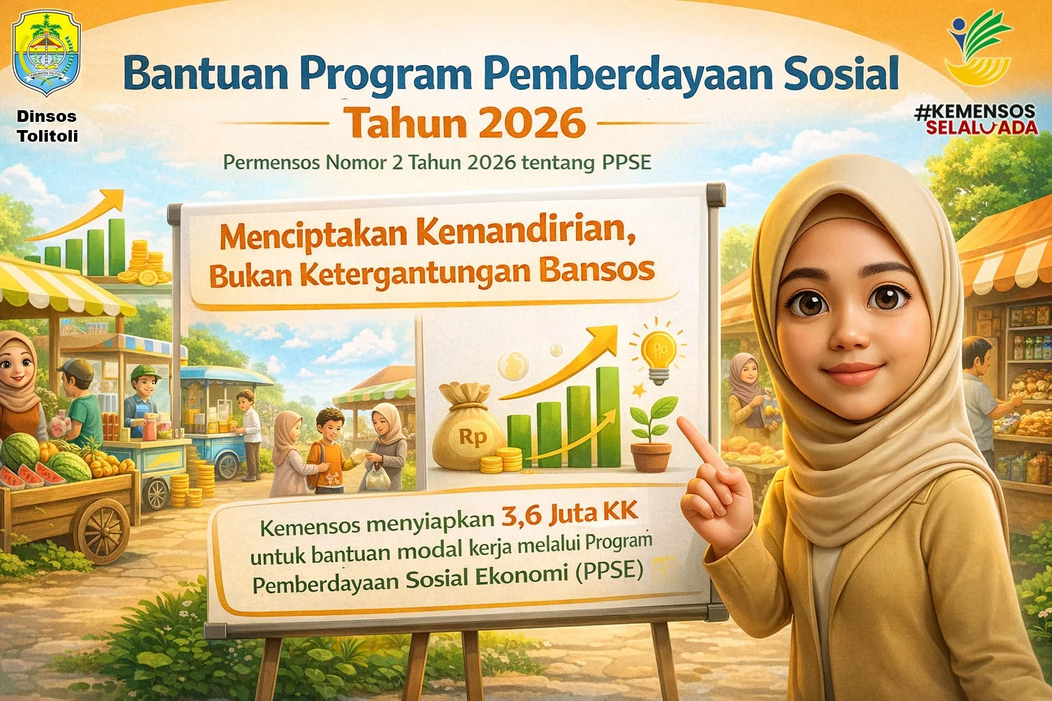 RRI.CO.ID, Tolitoli - Pemerintah melalui Kementerian Sosial Republik Indonesia akan melakukan perubahan besar dalam skema Bantuan Sosial (Bansos) mulai tahun 2026. Sebanyak 3,9 juta Keluarga Penerima Manfaat (KPM) secara nasional akan dialihkan dari pola bantuan tunai menuju program pemberdayaan ekonomi produktif. Kebijakan tersebut ditandai dengan terbitnya Peraturan Menteri Sosial Nomor 2 Tahun 2026 tentang Program Pemberdayaan Sosial Ekonomi (PPSE) yang menggantikan Peraturan Menteri Sosial Nomor 7 Tahun 2023 tentang Pahlawan Ekonomi Nasional (PENA).