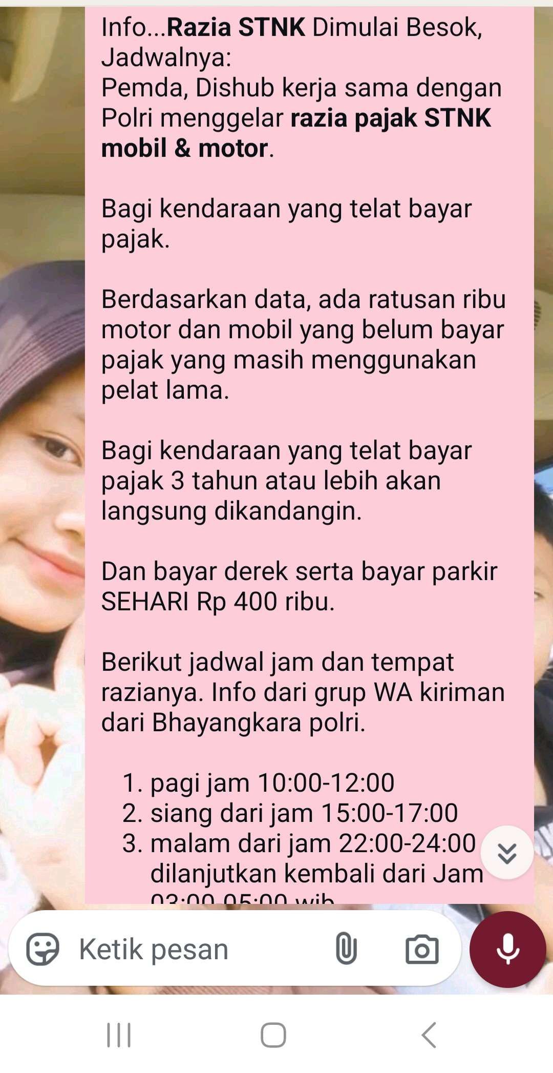 Viral Pesan Razia STNK dan Penahanan Kendaraan di WhatsApp, Polres Tolitoli: HOAKS!