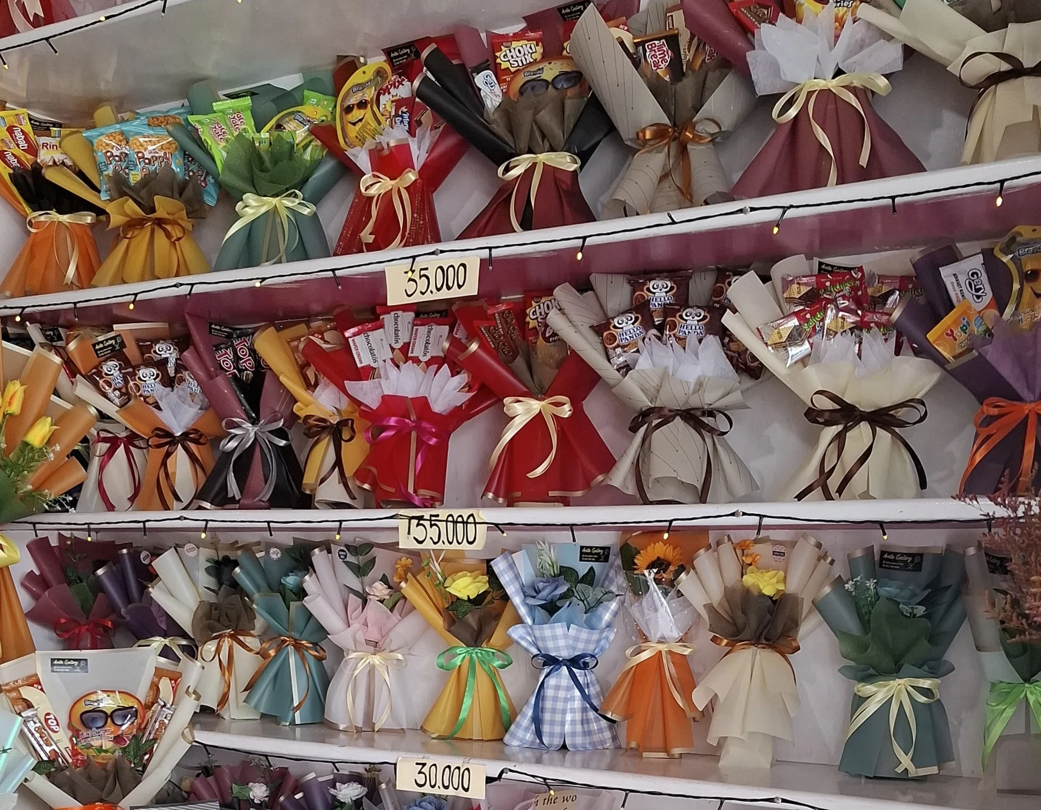 “Saya mulai menggeluti usaha ini sejak 2012 lalu. Awalnya hanya buket bunga, kemudian berkembang ke berbagai produk lain. Untuk buket, kebanyakan saya buat sendiri dan setiap hari harus ada yang ready, jadi ketika ada pembeli barang sudah tersedia dengan pilihan harga yang bervariasi,” tutur Anita, Kamis (27/02/2026).