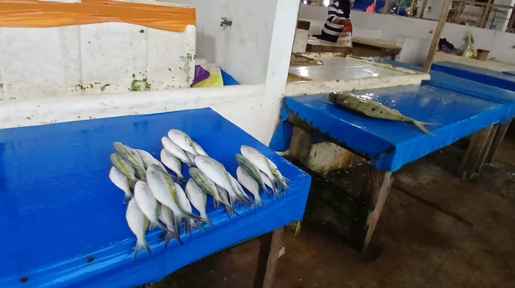 RRI.CO.ID, Tual - Cuaca ekstrim yang melanda Kepulauan Kei akhir-akhir ini turut mempengaruhi harga ikan. Berdasarkan pantauan rri.co.id hingga Kamis (12/3/2026) siang, di Pasar Maren Tual harga ikan alami lonjakan terutama pada jenis ikan karang dan dasar laut seperti kerapu dan bubara. (Foto: rri.co.id/Maryam)