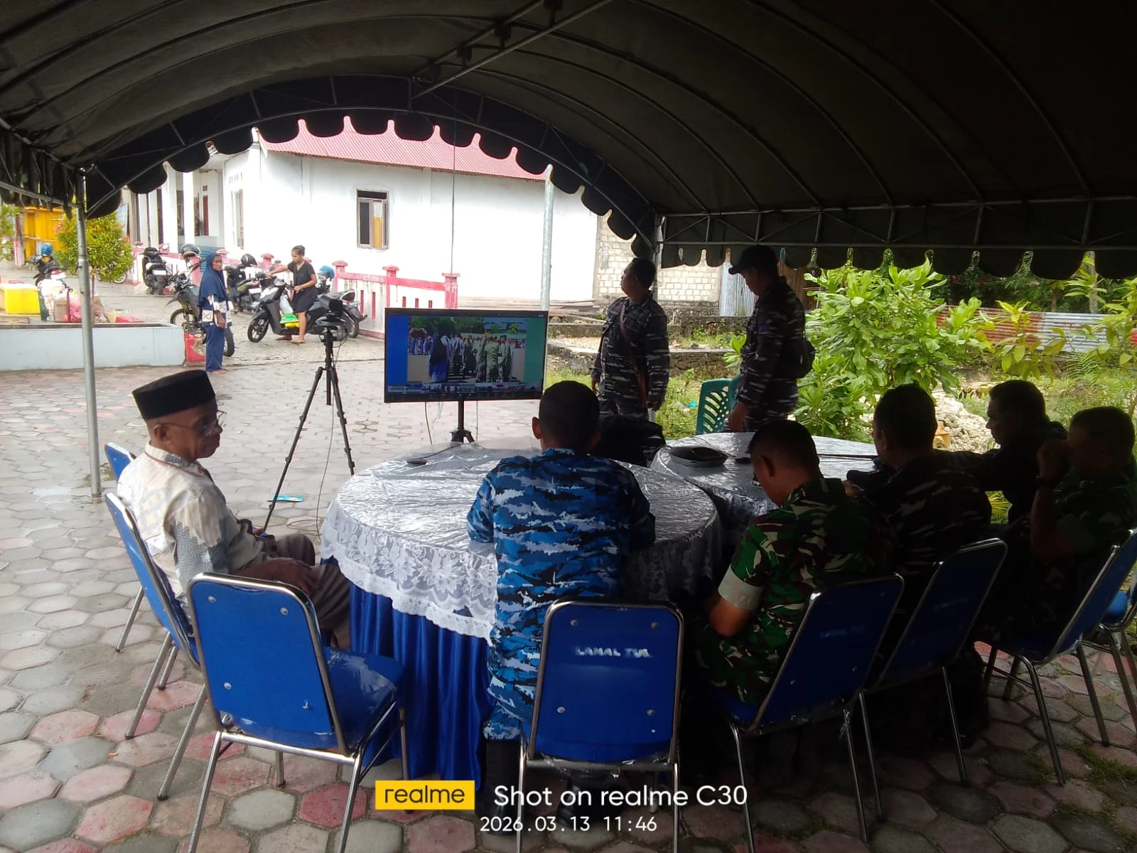 Pelaksanaan Video Konference di Kota Tual terselenggara di Pantai Indah Kiom Kota Tual diikuti Wakil Wali Kota Tual, Amir Rumra, Danlanal Tual, Kolonel Laut (P) Andik Putro Wibowo,S.Sos., CTMP., CHRMP, M.A.P, Dandim 1503 Tual Letkol. Inf. Andi Agussalim, Danlanud Dominicus Dumatubun, Letkol Pas Firasat Amansyah, Waka Polres Tual, Kompol Roni Manawan, Kapolres Maluku Tenggara, AKBP. Rian Suhendi, Danyon 734 Nawasena, Letkol. Inf. Hendry H. Cahyana.