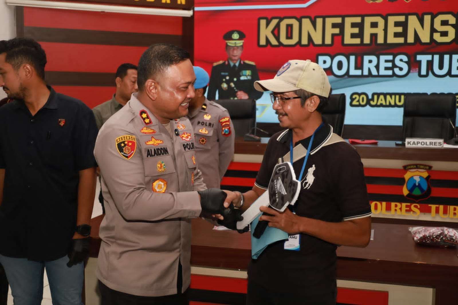 Sebagai bentuk pelayanan kepada masyarakat, Polres Tuban juga melakukan penyerahan kembali sepeda motor hasil kejahatan kepada para korban. Penyerahan dilakukan secara simbolis oleh Kapolres Tuban sebagai wujud komitmen Polri dalam memberikan kepastian hukum.