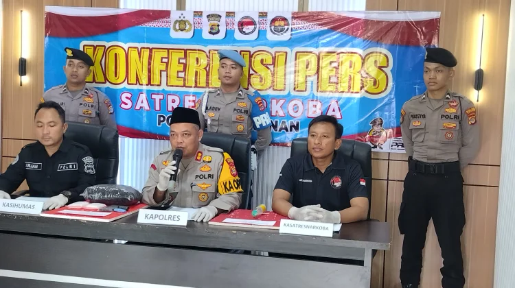Kapolres menjelaskan RM yang diduga kuat sebagai pengedar akan dijerat dengan Pasal 114 ayat (2) UU No. 35 Tahun 2009 tentang Narkotika Jo UU No. 1 Tahun 2023 tentang KUHP. Ia terancam pidana penjara seumur hidup atau paling singkat 6 tahun dan paling lama 20 tahun.