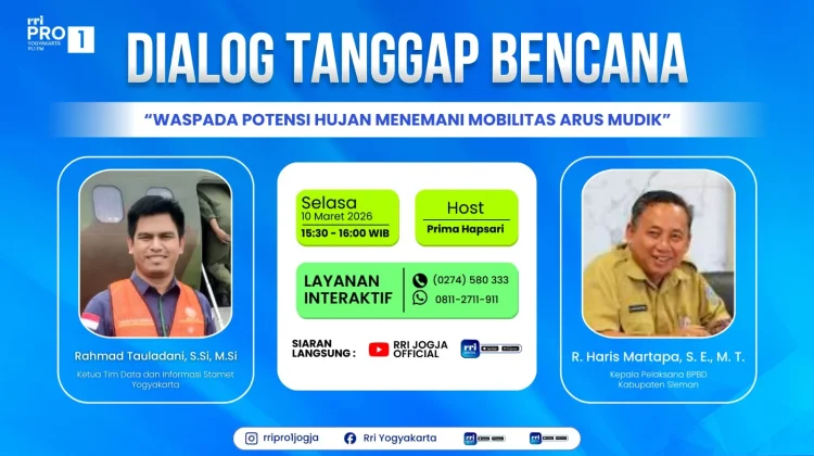 Sementara itu, Kepala Pelaksana BPBD Kabupaten Sleman R. Haris Martapa menyiagakan personel dan posko selama 24 jam penuh untuk mengantisipasi potensi cuaca ekstrem menjelang Lebaran 1447 Hijriyah. Langkah siaga darurat ini dilakukan guna menjamin keselamatan masyarakat serta meningkatkan respons cepat penanganan bencana hidrometeorologi di titik-titik rawan sepanjang jalur mudik.