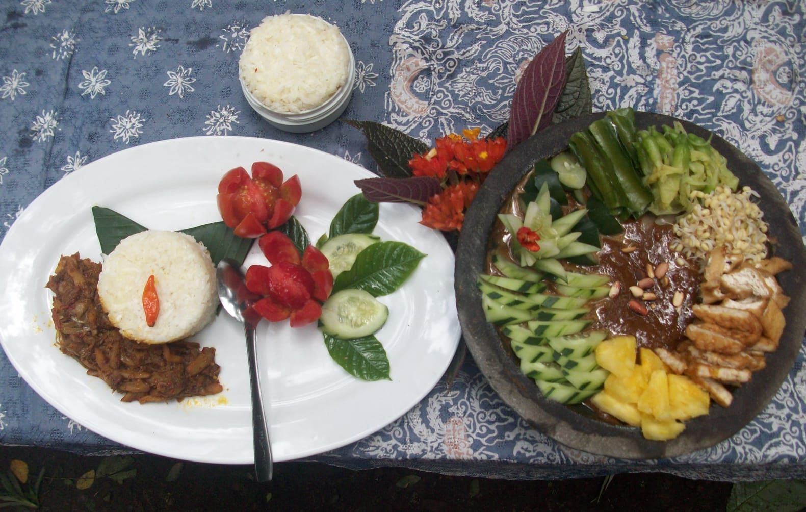 Hidangan ibu-ibu Jawa Timur ini mencuri perhatian, terlebih caranya membawa rujak petis dengan menjunjungnya di atas kepala. Haliya sebagai penjunjung rujak mengatakan lebih ringan ketika dibawa di atas kepala dibandingkan dengan tangan. (bunga)