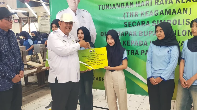 RRI.CO.ID, KULON PROGO – Dalam rangka memastikan pemenuhan hak pekerja menjelang hari raya, PT Putra Patria Adikarsa menyalurkan Tunjangan Hari Raya (THR) keagamaan. Penyerahan secara simbolis dilakukan oleh Bupati Kulon Progo, Agung Setyawan dengan didampingi Direktur Putra Patria Adikarsa, John Mosman dan Kepala Dinas Tenaga Kerja Kulon Progo Bambang Sutrisno, di PT Putra Patria Adikarsa, Rabu, 11 Maret 2026.